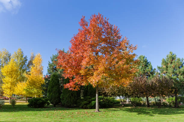 A fast-growing oak native to Indiana, valued for its strength, shade, and deep red autumn foliage.